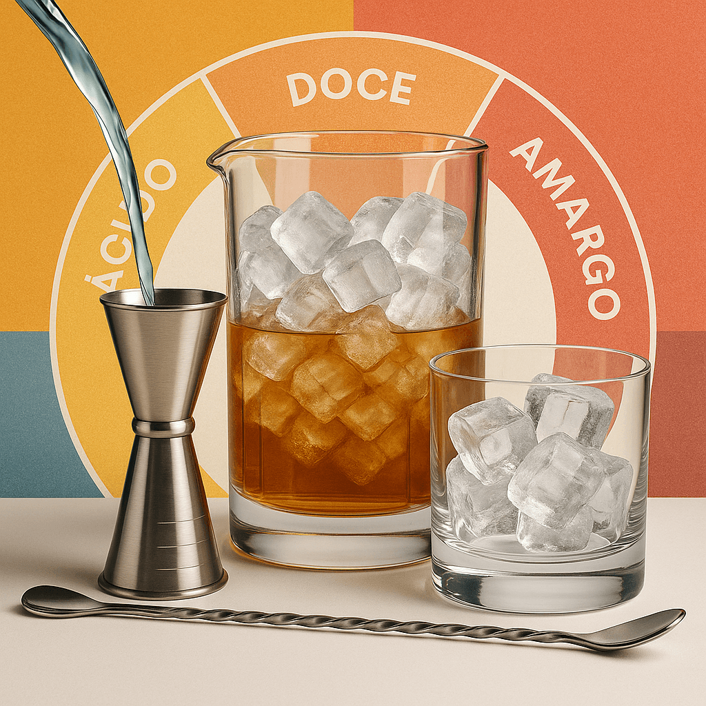 Essa combinação é a base da maioria dos drinks clássicos e autorais, e com ela você aprende a montar bebidas equilibradas, criativas e cheias de sabor — mesmo usando ingredientes simples do dia a dia.