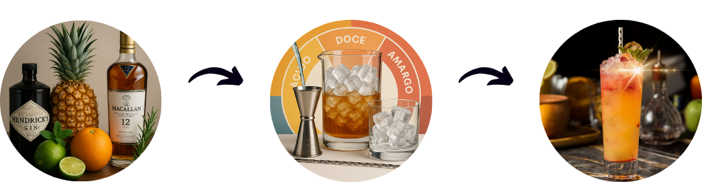 “Não é sobre decorar receitas. É sobre entender o raciocínio por trás de cada drink e adaptar ao seu gosto, seu estilo e seu orçamento.”