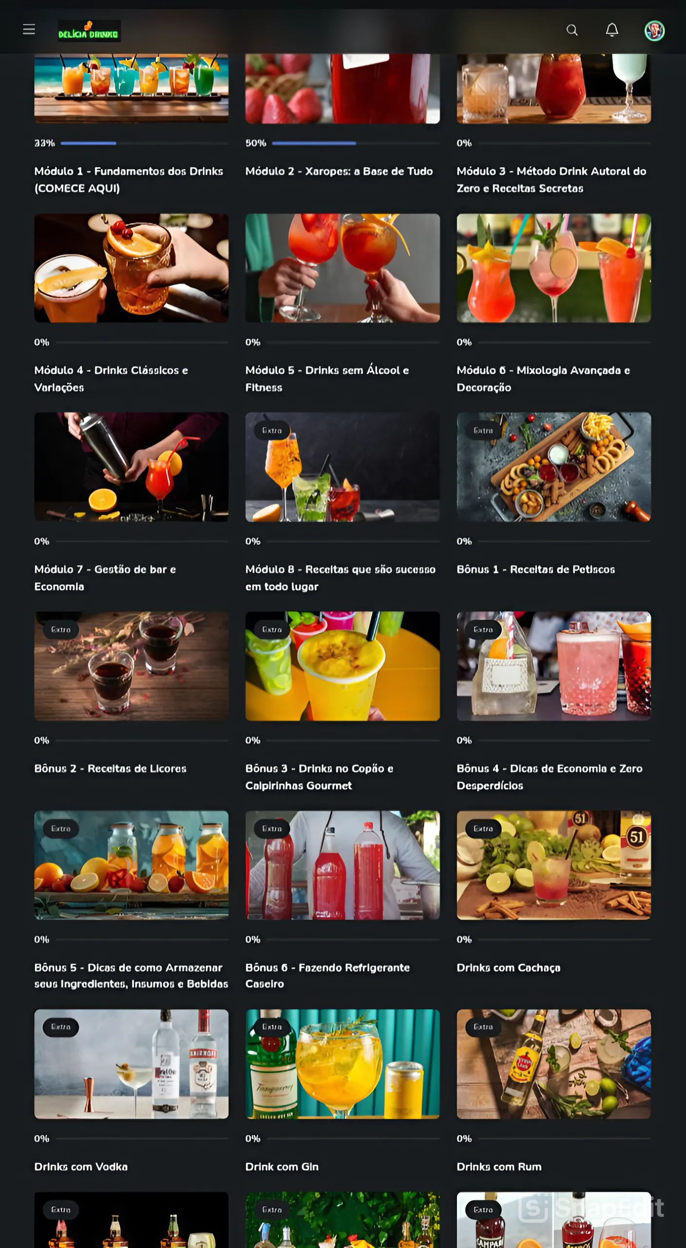 + de 200 receitas de drinks Separadas e organizadas em VíDEO